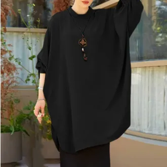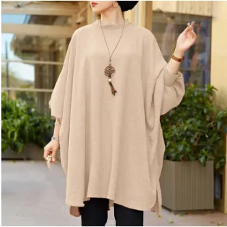 2026 Women's Muslim Blouses Elegant Solid Loose Casual O-neck Lantern Sleeve Pullover Tunic Tops Ramadan Abayas Blusas Mujer New